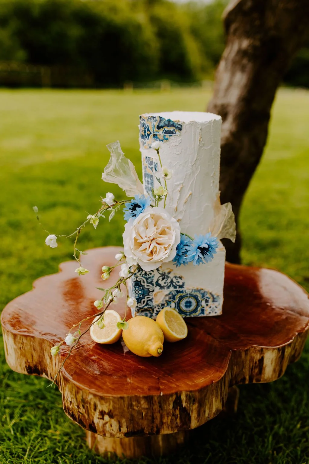 A statement tree trunk cake stand handcrafted by a local craftsman using rescued felled trees.